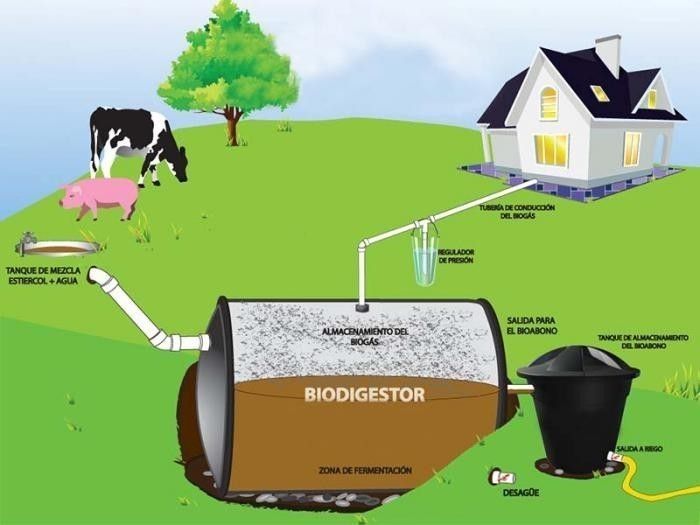 2. Transformación en biogás y biofertilizantes mediante el biodigestor.